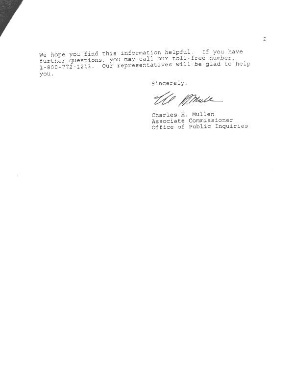 Letter from SSA